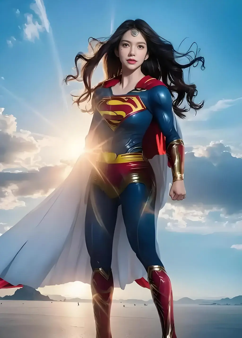 麦乐迪没有选择传统的英雄战衣,而是亲手设计了一套充满个人印记的装备。她的战衣上缀满了优雅的音符元素,流动的线条仿佛五线谱在身体上舞蹈,这不仅是对她音乐家身份的致敬,也象征着她的超能力如同音乐般拥有治愈与振奋人心的力量。当她第一次穿上这身战衣,迎着塞纳河的风翱翔于埃菲尔铁塔旁时,巴黎的天空中多了一道既强大又优美的风景线。她不再隐藏,而是以“女超人”的身份,公开用她的能力守护城市的每一个角落。